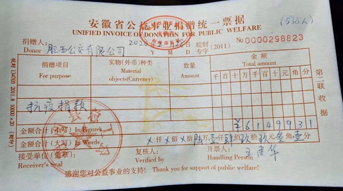 疫情無(wú)情人有情,面對(duì)來(lái)勢(shì)洶洶的疫情,公交人將團(tuán)結(jié)一心,全力以赴打贏防疫狙擊戰(zhàn),保障市民的出行需求和生命健康。 自2月21日開始至2月28日下午,共收到來(lái)自全司干部職工捐款538筆,合計(jì)捐款金額61499.31元,都已及時(shí)轉(zhuǎn)交肥西縣總工會(huì)。