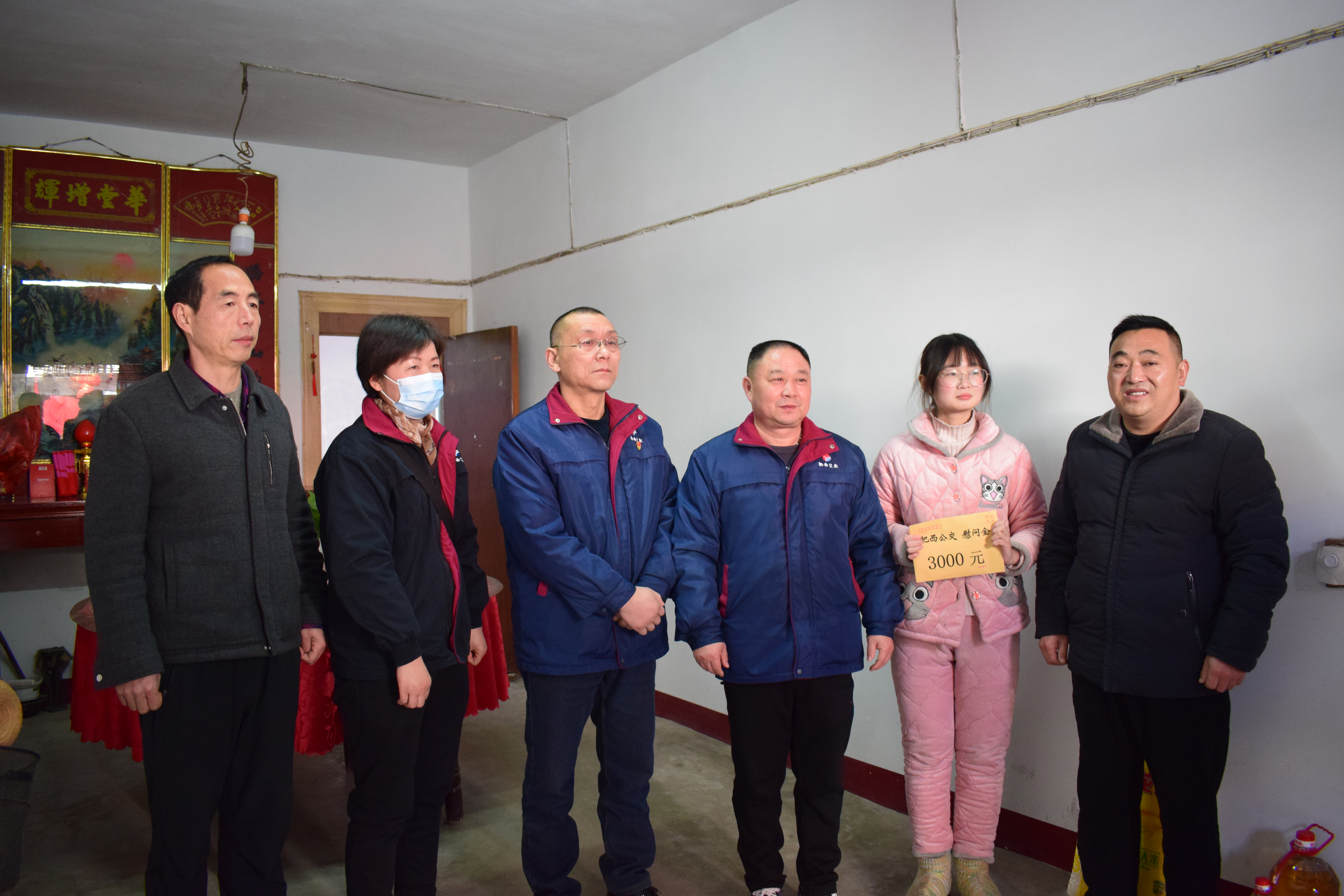 孫蘭云,現(xiàn)就讀于淮北師范大學(xué),今年公司是第二次過(guò)來(lái)探望。年前由于媽媽的一場(chǎng)車(chē)禍,給這個(gè)本就困難的家庭雪上加霜。目前孫蘭云家中尚有九十多歲曾祖母和爺爺需要人常年照顧,母親車(chē)禍后臥床不起,無(wú)法再照顧老人和孩子,整個(gè)家庭的負(fù)擔(dān)全靠父親孫先軍一個(gè)人務(wù)農(nóng)及平時(shí)打工承擔(dān),本來(lái)經(jīng)濟(jì)收入不穩(wěn)定,加之年前媽媽的一場(chǎng)車(chē)禍,讓這個(gè)家風(fēng)雨飄搖;錢(qián)焱琳,目前就讀于安徽建筑大學(xué),父親錢(qián)勇于2021年患肺部惡性腫瘤,母親無(wú)業(yè),靠政府低保生活。自從這個(gè)家庭的頂梁柱倒下后,家庭無(wú)經(jīng)濟(jì)來(lái)源,生活極其困難;曹星宇,目前就讀于東北大學(xué),單親家庭,和母親2人生活在一起,母親視力一級(jí)殘,沒(méi)有經(jīng)濟(jì)來(lái)源,生活條件困難,靠政府低保生活。得知他們的困難后,肥西公交主動(dòng)開(kāi)展幫扶。每到一戶(hù)貧困學(xué)子家中,李蓬松一行都會(huì)詳細(xì)同村干部和貧困家庭進(jìn)行交流,并詢(xún)問(wèn)他們的家庭生活及身體情況,同時(shí)送上慰問(wèn)品和慰問(wèn)金,鼓勵(lì)他們保持勤奮刻苦地拼搏精神,不氣餒、不自卑,堅(jiān)定信心,樂(lè)觀(guān)生活,努力用知識(shí)改變命運(yùn)。