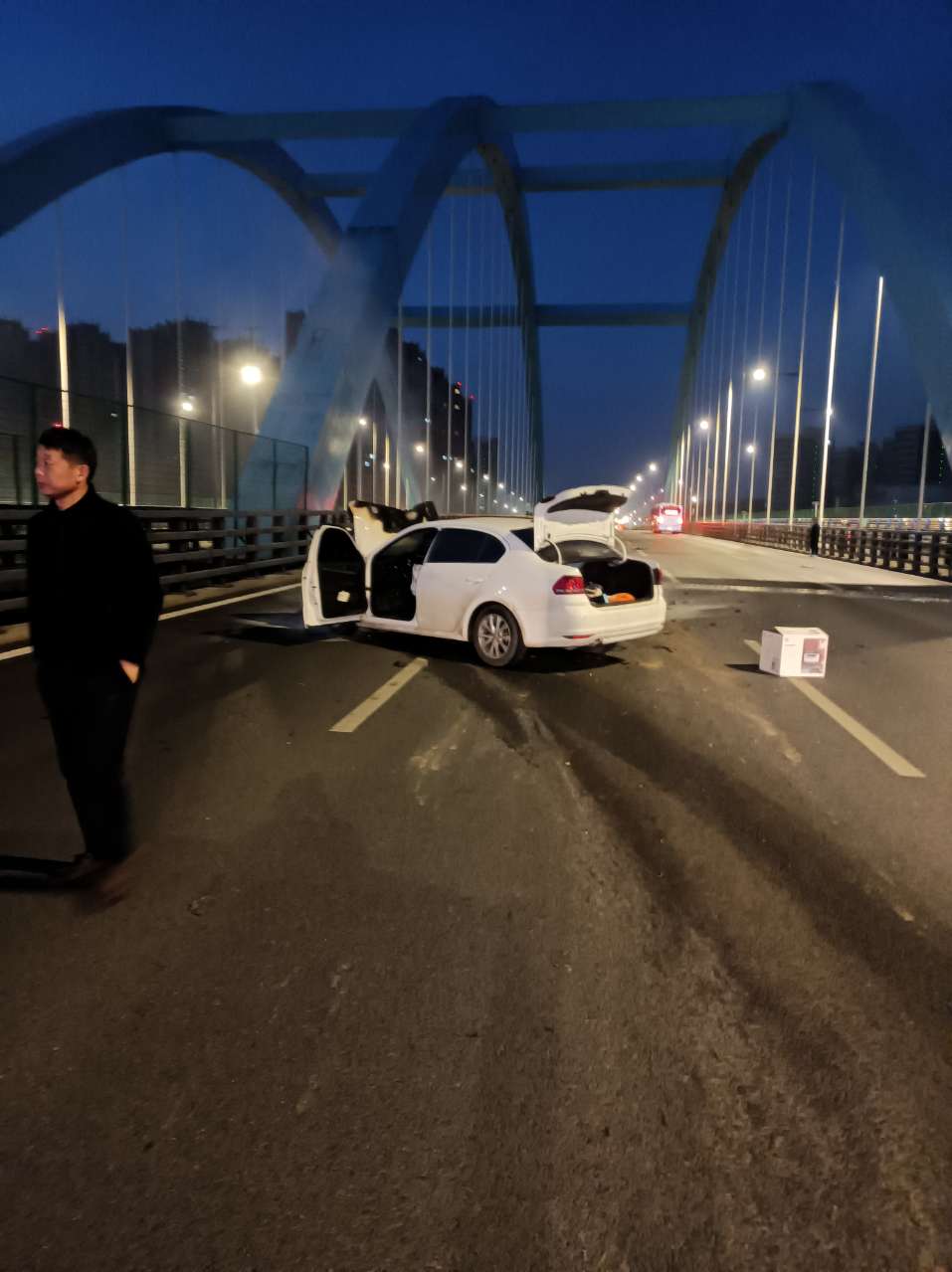12月3日早晨6時(shí)18分,699路駕駛員趙峰駕駛公交車(chē)運(yùn)行到翡翠路橋附近時(shí),發(fā)現(xiàn)橋面一輛私家車(chē)因交通事故發(fā)生燃燒,現(xiàn)場(chǎng)火光沖天,私家車(chē)引擎蓋下火苗亂串,火勢(shì)不斷變大,情況十分危急。私家車(chē)車(chē)主蜷縮在車(chē)輛不遠(yuǎn)處的路牙邊,表情非常痛苦。趙峰見(jiàn)狀,立即將公交車(chē)安全???/span>在路邊,迅速拿起公交車(chē)上的2個(gè)滅火器,奔向起火車(chē)輛。抽保險(xiǎn)、拔插銷(xiāo)、握噴管,對(duì)準(zhǔn)火苗根部按壓手柄,剎那間,滅火器成功將火苗撲滅。然而,第一瓶滅火器快用完了,但車(chē)引擎蓋下方仍有火點(diǎn),此時(shí)路邊已陸續(xù)跑過(guò)來(lái)多名熱心群眾,一名熱心群眾拿起趙峰放置的另一個(gè)滅火器,快速加入滅火隊(duì)伍,合力將大火撲滅,使得險(xiǎn)情得以控制。黃金90秒,趙峰沒(méi)有絲毫猶豫,整個(gè)撲救過(guò)程,專業(yè)、熟練、高效。成功控制住火情后,趙峰跑到失火私家車(chē)主旁,耐心詢問(wèn)其傷勢(shì)情況,并協(xié)助其報(bào)警。隨后,細(xì)心的趙峰又折返至私家車(chē),將車(chē)內(nèi)行車(chē)記錄儀及錢(qián)包等貴重物品取出車(chē)內(nèi),交到私家車(chē)主手上。由于私家車(chē)主當(dāng)時(shí)已無(wú)法坐立,躺在冰冷的路面,伴隨身體不適、神智模糊不清,事發(fā)時(shí)段為清晨,路面光線較暗,且溫度較底,趙峰擔(dān)心其生命安全,一直在旁陪伴、安撫,直至6時(shí)25分,交警趕到現(xiàn)場(chǎng),趙峰方返回工作崗位。